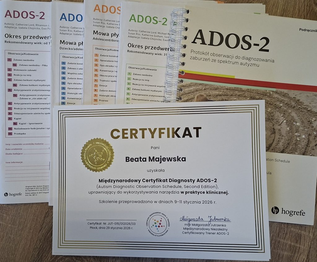 ADOS-2 (Autism Diagnostic Observation Schedule, Second Edition) to obecnie jedno z wielu narzędzi umożliwiających zweryfikowanie, czy u Pacjenta występują objawy spektrum autyzmu. Skupia się na różnych obszarach, takich jak komunikacja werbalna i niewerbalna, interakcje społeczne, zainteresowania i aktywności stereotypowe.
